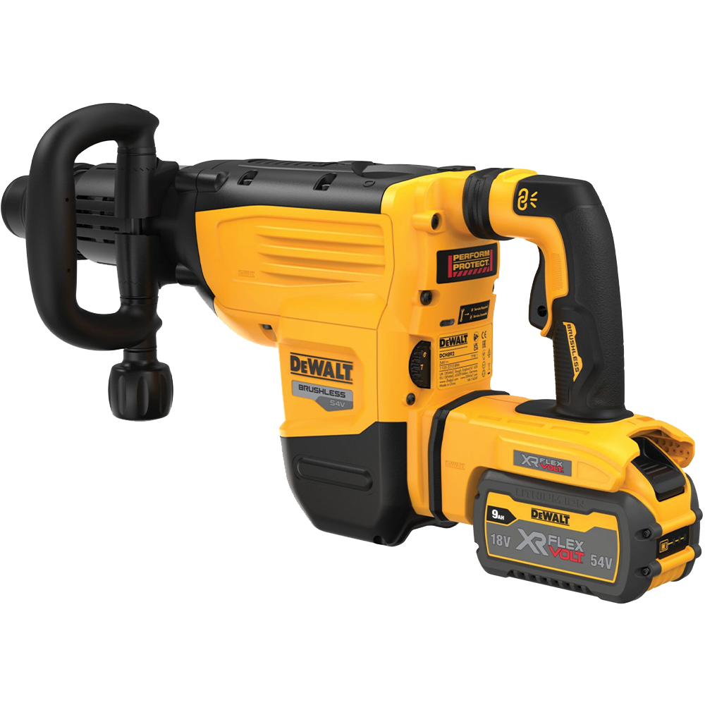 - DeWalt DCH892X2-QW 54V XR Flexvolt ciocan demolator cu motor fara perii, mai multa putere, dimensiuni mai compacte si o durata de viata mai lunga.